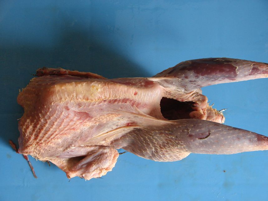 particulièrement proéminente Association congestion, lésions +/- chroniques Mauvaise plumaison Gras restant humide, rosé, collant et de consistance gélatineuse Cachexie = amyotrophie + diminution masse graisseuse Cachexie aqueuse ou hydrocachexie = très maigre avec infiltration séreuse Cachexie sèche = très maigre, mais sans infiltration séreuse du tissu conjonctif |